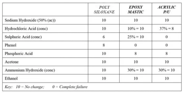 SparkleTuff™ Anti-Slip Floor Coating is a polysiloxane, a type of coating that has been on the global market since 1993. SparkleTuff™ is a product exclusively available from Safety Direct America since 2017. Polysiloxanes have extremely good weatherability including UV resistance, graffiti resistance, gloss and color retention, abrasion resistance, and chalk resistance. (The last means it resists forming a fine powder on the surface.) They are resistant to dirt pickup. The table below shows a comparison of polysiloxane to two other types of floor coating systems. SparkleTuff™ has low VOC’s.